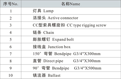 2、本燈具出廠(chǎng)時(shí)不配光源,由用戶(hù)自配,建議使用亞明、飛利浦光源;