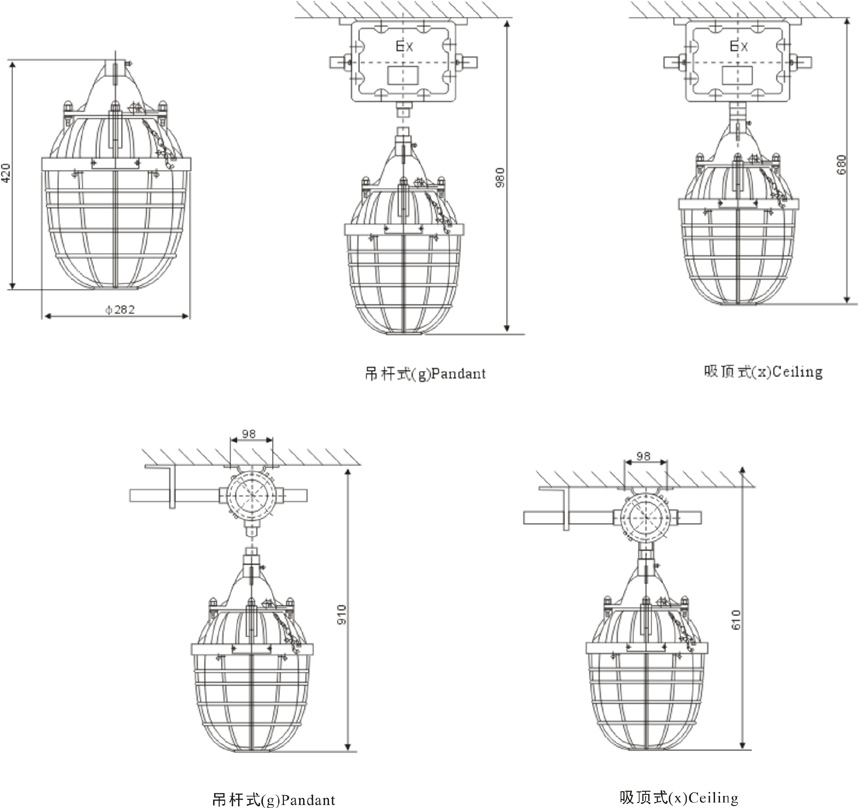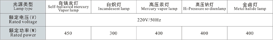 3、可配裝白熾燈、汞燈、高壓鈉燈、金鹵燈。