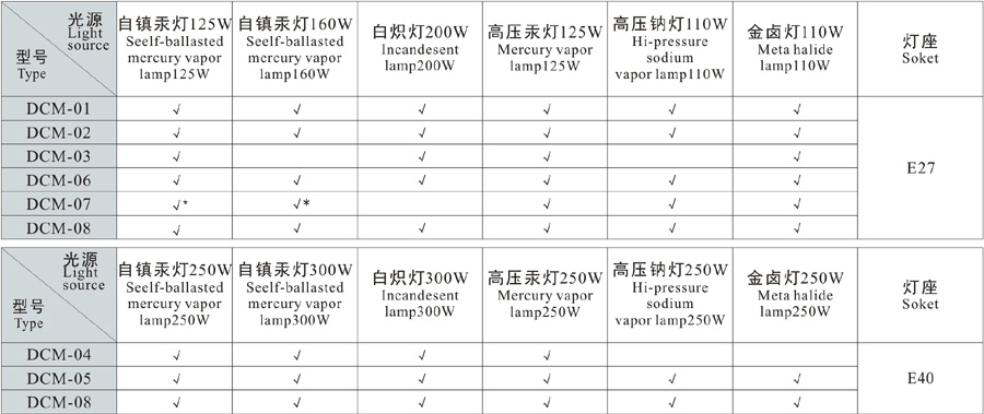 3、Type 01、02、05、06can install lamp cover to user's requirement.