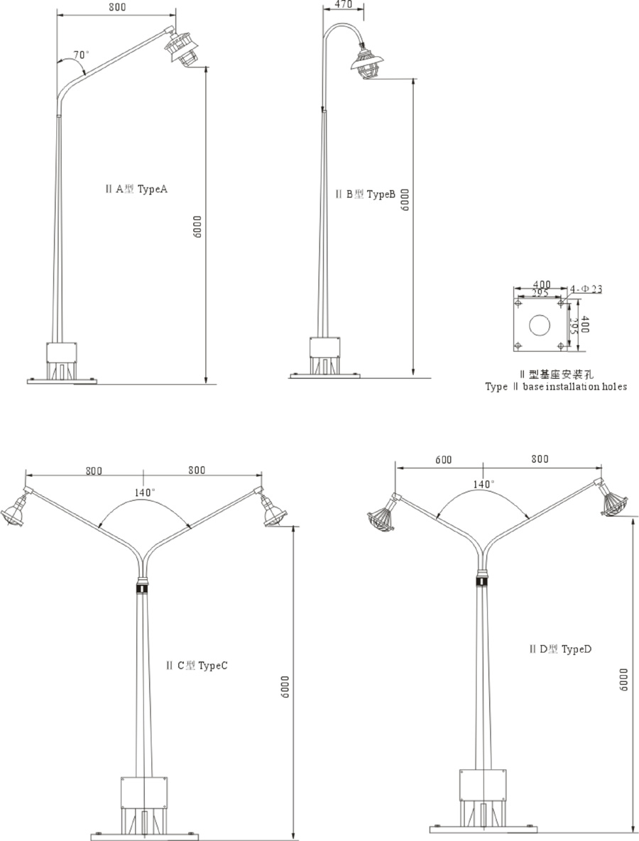 3、01、02、05、06型可根據(jù)用戶要求配裝燈傘。