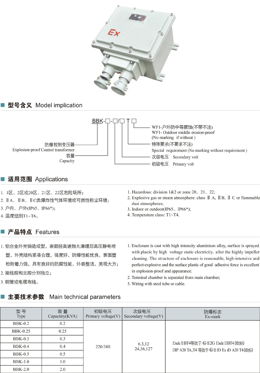 BBK-系列防爆控制變壓器