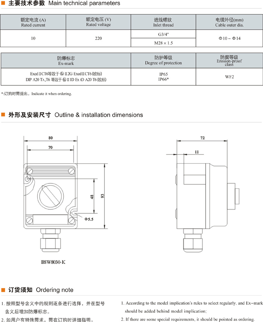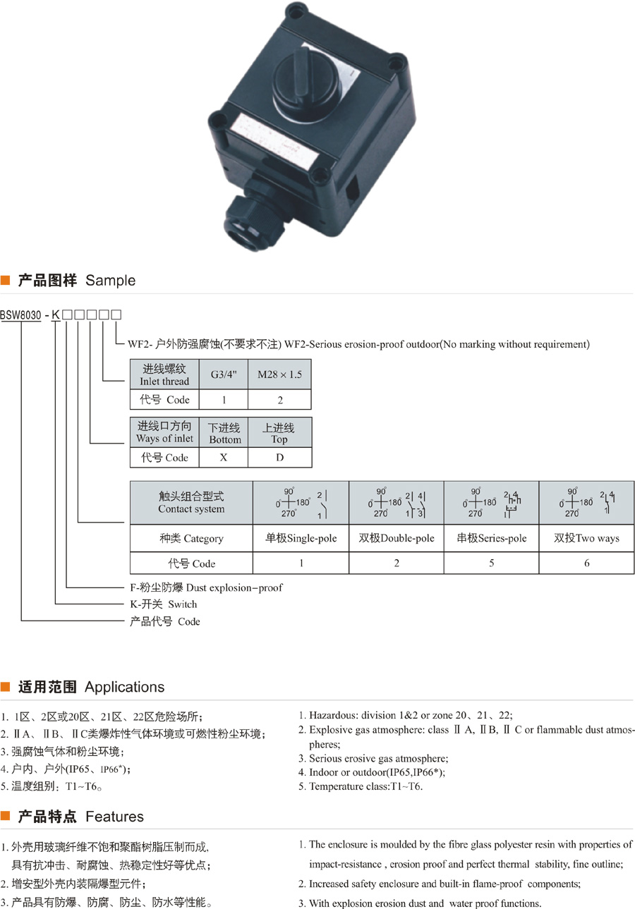 BSW8030-K系列防爆防腐控制開關(guān)(照明開關(guān))